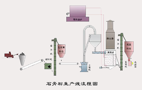 石膏粉磨粉工藝大概由以下幾部分組成,振動給料機-皮帶輸送機-顎式破碎機-斗式提升機-生石膏料倉-電磁振動給料機-磨粉機-料倉-導熱油爐-沸騰爐-除塵器-提升機-成品料倉等組成,如下圖所示,整個磨粉工藝緊密相連,配合工作,讓石膏礦石完成整套磨粉加工工序。目前市場的石膏磨粉工藝自動化能力強,整條生產線只需幾個人就能完成磨粉加工流程,與早年的磨粉行業(yè)相比,技術先進很多,而且機器自動化控制讓給料更均勻、有序,磨粉效率更高。石膏磨粉和其他礦石研磨工藝差不多,原理都是大同小異,根據礦石硬度、粒度及其他物理性質的不同,可能配備的礦山設備略有不同。