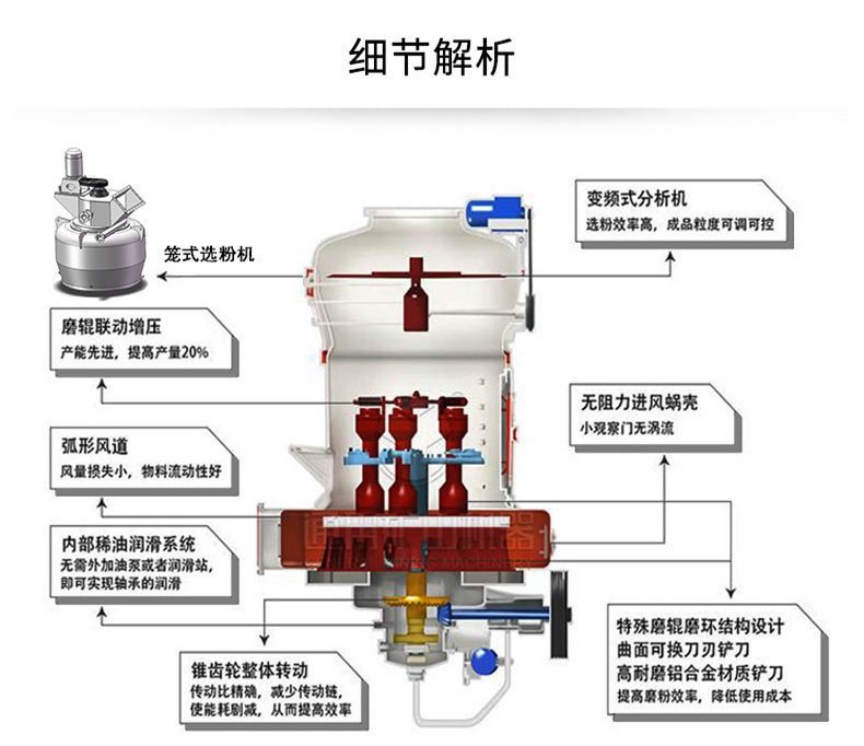 歐版磨粉機整體采用立式結構,造型簡單,占地面積相對較小。其研磨部分設計采用新型設計,可調可控成品粒度,大大提高生產效率。重要部件采用優質鑄件,工藝精良,保證了設備的耐用性,工業制粉更加高效。