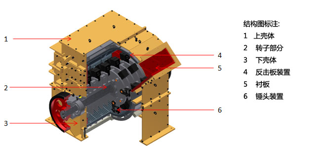 合理的多腔破碎室組合,新型的便捷雙調節機構,保證了出料產品粒度細而均勻,≤3mm的粒度占90%。便捷的檢修維護裝置,使用調節錘頭,篩板更加敏捷。磨損件均采用新型優質多元素高合金耐磨材質制造,保證錘頭、板襯的耐磨性和耐沖擊性。